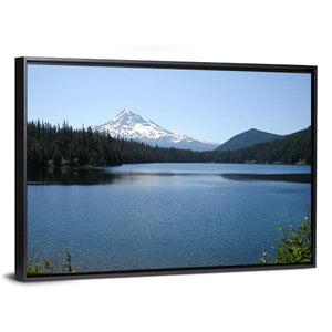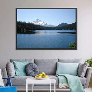 This serene canvas features a majestic view of Mt. Hood reflecting in a calm lake, surrounded by lush forests. The tranquil blue and green tones create a peaceful atmosphere, making it a wonderful addition to any nature lover's decor.