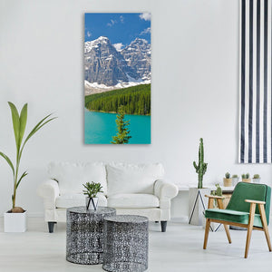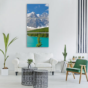 This striking canvas art captures the serene beauty of Moraine Lake, featuring a lone evergreen tree in the foreground, vibrant turquoise water, and majestic snow-capped mountains. Its tranquil and scenic atmosphere makes it a wonderful addition to any nature-loving home.
