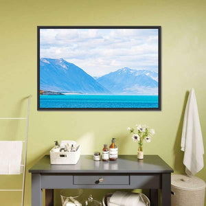 Mount Cook & Lake Tekapo shows snow-capped mountains above turquoise lake and a cloudy sky in a realistic nature-photography style. The serene, vast scene brings a calm, natural feel that suits modern interiors and room decor.