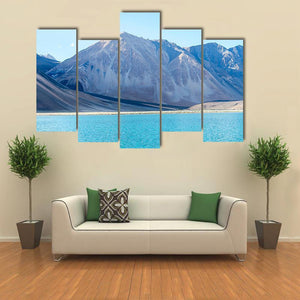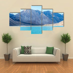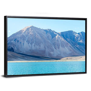 Mountain At Lake Pangong shows mountains, a clear blue lake and open sky in a serene, vast landscape. The nature-photography composition uses rule-of-thirds and depth to highlight textured mountain slopes and clear blue water. It fits well in modern homes such as living rooms or bedrooms looking for calm landscape art.