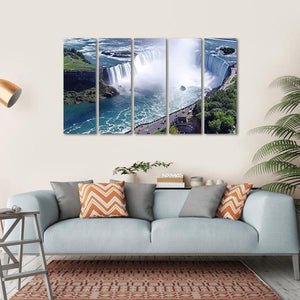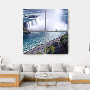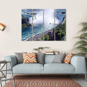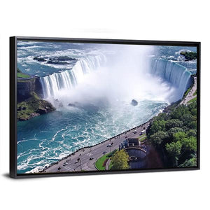 Experience the majestic beauty of Niagara Falls with this canvas wall art. The vibrant colors capture the powerful flow of water as mist rises, evoking a sense of nature's grandeur. This piece adds a striking touch to any space.
