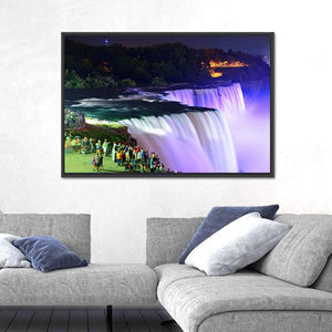 Capture the vibrant beauty of Niagara Falls at night in this captivating artwork. Featuring a stunning waterfall illuminated with purple lights, this piece exudes a lively and spectacular atmosphere that brings nature to life. Perfect for creating an inviting ambiance in any modern space.
