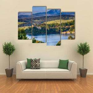 Castle on a Hill Above a Mountain Lake Canvas Wall Art