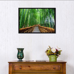 This canvas artwork beautifully captures a serene path through a bamboo forest. Its tranquil vibe is emphasized by lush greenery and warm browns, making it a delightful addition to any natural-themed decor.