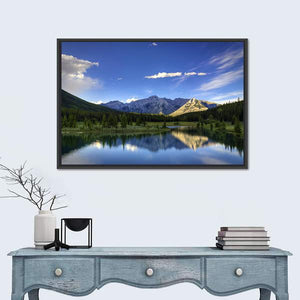 This canvas wall art captures the serene beauty of Cascade Ponds in Banff National Park. Featuring majestic mountains and a tranquil lake, the composition reflects the surrounding sky and trees, creating a peaceful atmosphere perfect for nature lovers.