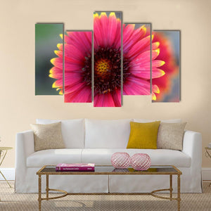 Ripe Red Flower Canvas Wall Art presents a close-up, photorealistic study of a red flower with detailed petals and a dark center dotted with yellow speckles. Its pink, yellow, brown, and green palette feels vibrant, delicate, and natural, making the print a simple choice for modern home decor.