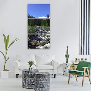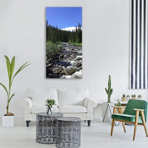 Whitewater Mountain Stream in Pine Forest Vertical Canvas Wall Art