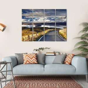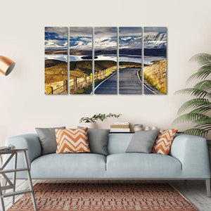 This captivating canvas artwork features a winding road leading towards the serene Lake Tekapo, framed by majestic snow-capped mountains. The soft palette of blues, whites, and greens evokes a sense of vastness and adventure, making it a lovely addition to any nature-inspired décor.