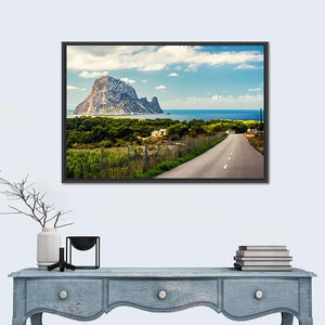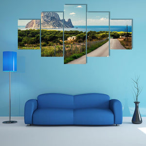 This landscape canvas art captures a serene road leading to the Cala d'Hort Beach in Spain. With its inviting hues of blue and green, it evokes a sense of vastness and tranquility, making it a perfect addition to any nature-themed décor.