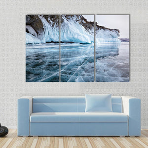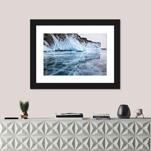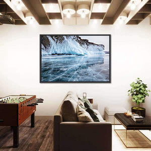 This canvas wall art captures the serene beauty of a frozen Siberian lake, showcasing stunning ice formations and majestic cliffs. It brings a cold, tranquil atmosphere to your space, perfect for nature lovers.