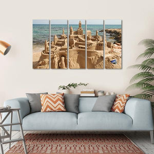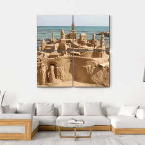 Sandcastle On Mediterranean Beach Canvas Wall Art