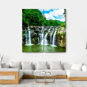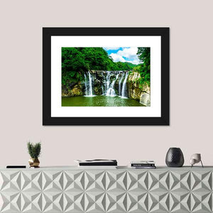 Experience the serenity of Shifen Waterfall in this exquisite landscape canvas art. Lush green foliage and cascading water create a refreshing atmosphere, making this piece a perfect addition to any nature-inspired décor.