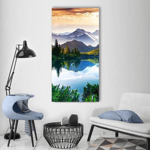 Sunny Day In Mountain & Lake Vertical Canvas Wall Art
