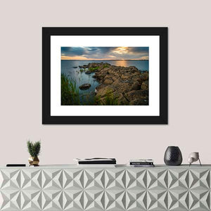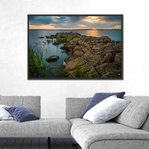 Sunset Over a Stone Pier in a Lake Canvas Wall Art