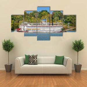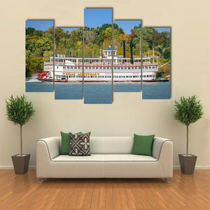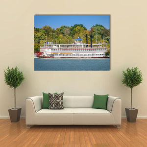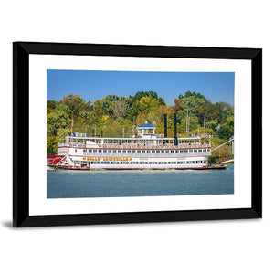 This captivating canvas features the 'Belle of Louisville' steamboat gliding along a serene river, surrounded by vibrant autumn foliage. With its realistic and vintage style, it brings a picturesque ambiance to any space.