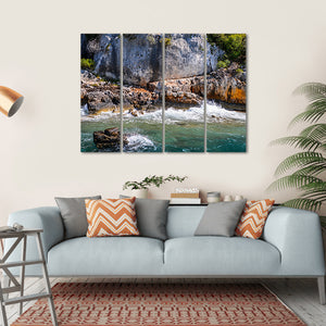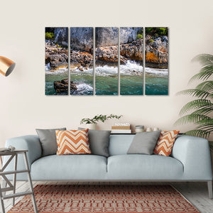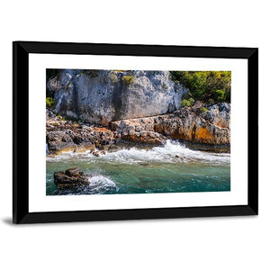 This artwork captures the dynamic beauty of the ocean and cliffs at Kekova Island. With crashing waves and clear water, it showcases a vibrant palette of blue, green, and gray that brings a powerful natural vibe to any space.