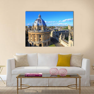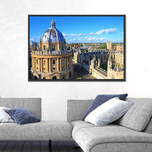 This canvas artwork captures the grandeur of Oxford, featuring the iconic Radcliffe Camera and university buildings set against a serene blue sky. Its architectural detail and rich colors bring a historic charm to any space.