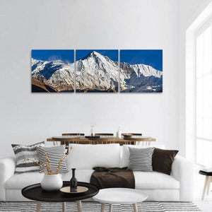 This panoramic canvas wall art captures the majestic snowy peaks of Cho Oyu in Nepal against a clear blue sky. Its serene and vast landscape invites a calming presence into any room.