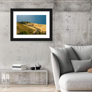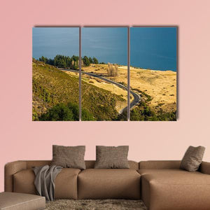 Winding Road Along Mountain Lake Canvas Wall Art