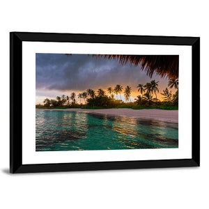 Bring the serenity of a tropical beach into your space with this beautiful canvas wall art featuring palm trees, ocean waves, and a dramatic sunset. The realistic depiction captures both the calm and the approaching storm, making it a striking focal point for any decor.
