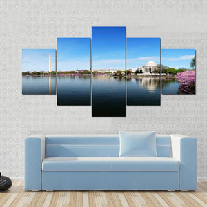 This canvas wall art beautifully captures the Washington Monument and Jefferson Memorial against a backdrop of blooming cherry blossoms and the tranquil Tidal Basin. With its serene and picturesque qualities, it’s an ideal piece for adding a touch of nature to your home.