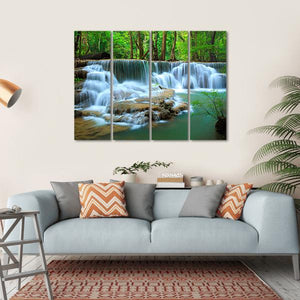 Experience the serene beauty of a lush green forest with this stunning canvas depicting a cascading waterfall. The vibrant palette of greens and blues captures the refreshing natural vibe, making it a wonderful addition to any space that craves a touch of nature.