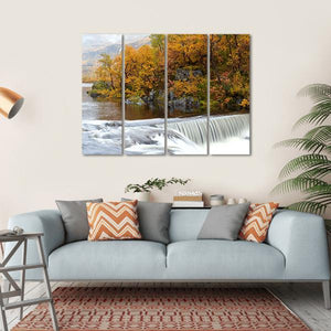 This artwork captures a vibrant waterfall framed by autumn trees, creating a serene and natural atmosphere. The flowing water and rich colors of orange, yellow, brown, and green evoke the beauty of a peaceful landscape. It's an ideal piece for bringing the tranquility of nature into your space.