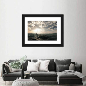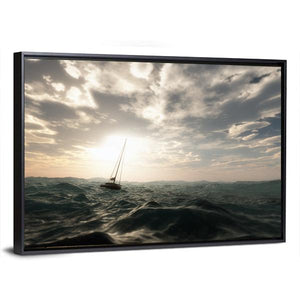 Sailing Boat In Storm Panoramic Canvas Wall Art
