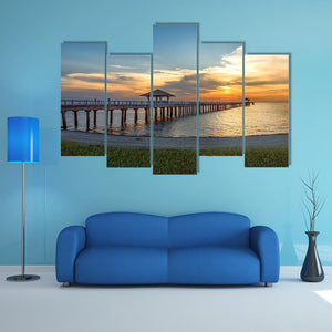 Wooden Pier with Gazebo at Sunset Canvas Wall Art