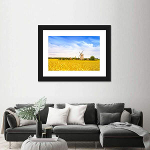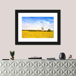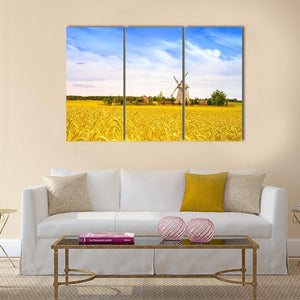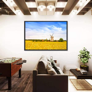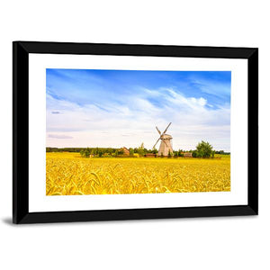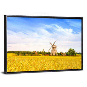 Wooden Windmill in Wheat Field Canvas Wall Art