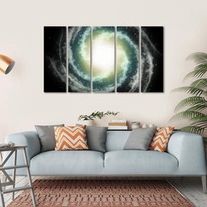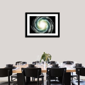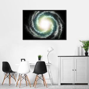 Explore the vastness of deep space with this canvas wall art featuring a stunning spiral galaxy and vibrant nebula. The cosmic scene is illuminated by a glowing core surrounded by swirling arms and speckled stars, evoking a serene and awe-inspiring atmosphere.