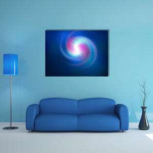 Spiral Nebula With Stars depicts an abstract spiral galaxy and nebula in blue, pink, white, and purple with a bright central core and swirling dust and stars. Its symmetrical composition and sense of depth give a vibrant, energetic, cosmic mood that fits modern homes and contemporary room decor.