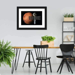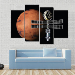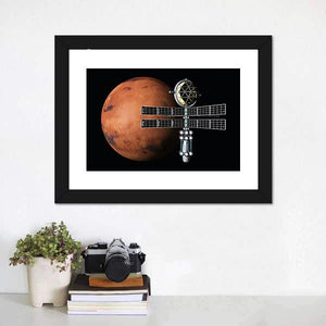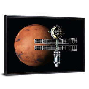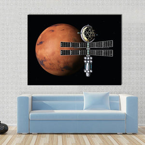 This captivating canvas features the planet Mars alongside a detailed spacecraft with intricate solar panels. Its vibrant palette of red, orange, and silver evokes a futuristic and exploratory atmosphere, perfect for modern decor.
