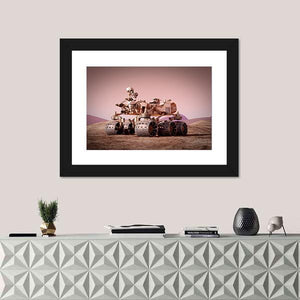 This canvas art features a Mars rover set against a desolate Martian landscape. The realistic digital artwork captures the exploratory spirit with its muted brown, pink, and tan palette, perfect for adding a futuristic touch to your décor.