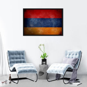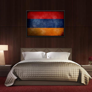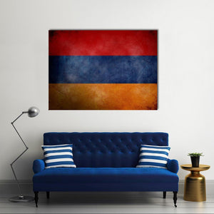 This canvas art features the Armenian flag, showcasing bold horizontal stripes in red, blue, and orange. Its vintage, textured look adds character to any space.