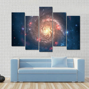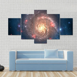 This canvas art features a stunning spiral galaxy adorned with swirling arms and a bright core, capturing the cosmic wonder of deep space. Its blue, orange, pink, and yellow hues create a mysterious and awe-inspiring atmosphere, making it a perfect addition to your modern décor.