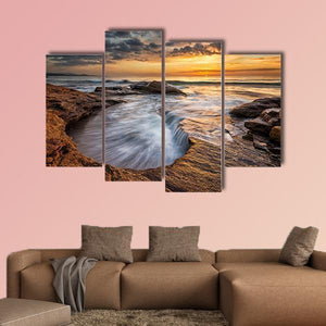 Black Sea Coast, Bulgaria is shown as a dramatic, naturalistic seascape of an ocean sunset and rugged rock formations. A visible whirlpool and brooding clouds give the scene a powerful yet serene mood, suited to modern living rooms or coastal-style rooms.