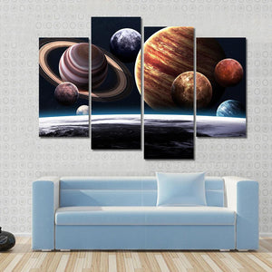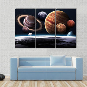 This canvas art captures the beauty of the solar system, showcasing planets, stars, and cosmic elements in a vast, awe-inspiring design. Its realistic digital art style immerses viewers in a colorful galaxy that brings depth to any space.