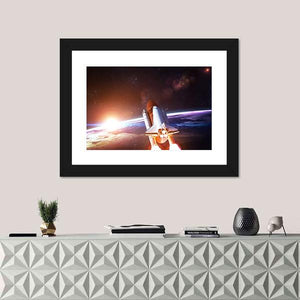 This canvas wall art captures the awe-inspiring moment of a space shuttle taking off, complete with vibrant flames and a stunning view of Earth and the cosmos. The modern design and futuristic vibe make it a captivating addition to any space-themed decor.
