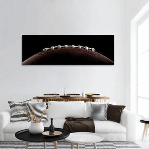 This American football canvas art captures the spirit of the game with a close-up view of the stitched seams, evoking a sporty and focused atmosphere. The modern design and rich palette of brown, white, and black make it a striking piece for any sports enthusiast.
