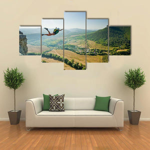 Base Jumper Leaping Over Valley Canvas Wall Art