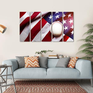 This captivating canvas art features a baseball resting proudly on the American flag, blending patriotic themes with a sporty vibe. The photorealistic details highlight the flag's wrinkles and the baseball's stitching, making it a standout piece for your wall.