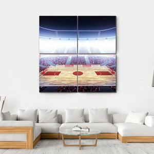 Capture the excitement of a bustling basketball arena with this vivid canvas wall art. The elevated, wide-angle view showcases an energetic crowd and prominently features the repeated word 'BASKETBALL' throughout the scene. This realistic piece brings a grand atmosphere to your sports-themed décor.