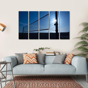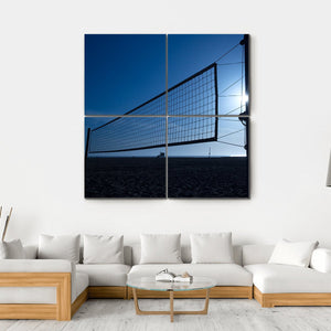 This canvas art captures a serene beach scene featuring a volleyball net and a lifeguard tower. The bright colors and sunburst effect create a peaceful atmosphere, making it an excellent choice for any room that seeks a touch of coastal charm.