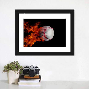 This canvas art captures a dynamic scene of a cracked baseball enveloped in flames. Its energetic palette of red, orange, and black emphasizes a powerful, intense mood, making it a striking addition to any sports-themed space.