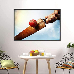 This canvas art captures the dynamic moment of a batsman striking a cricket ball. The intense action and modern design make it ideal for sports enthusiasts looking to enhance their wall decor.