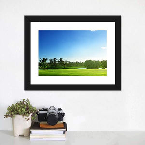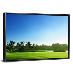 This canvas art captures the serene beauty of a golf course under a bright blue sky, punctuated by palm trees. It creates a peaceful atmosphere that complements any room’s decor, adding a touch of nature to your walls.