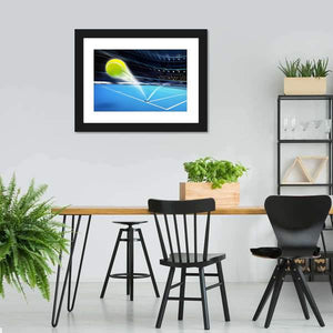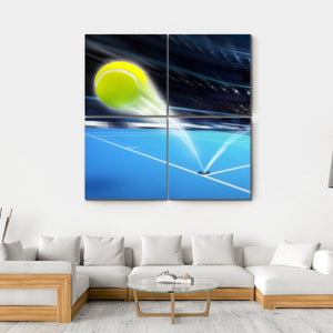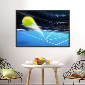 This canvas artwork captures the dynamic motion of a flying tennis ball, enhanced by glowing light trails that evoke energy and excitement. The vibrant palette of greens, blues, and blacks creates a modern and abstract feel, making it a captivating addition to any sports enthusiast's decor.