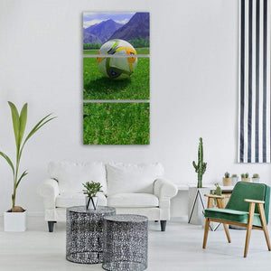 Modern Soccer Ball on Lush Mountain Field Vertical Canvas Wall Art