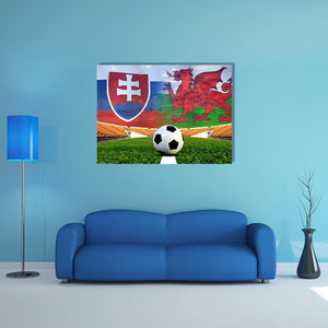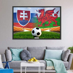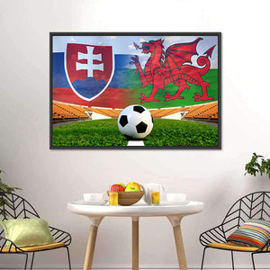 Celebrate the spirit of soccer with this dynamic canvas featuring the Slovak flag and the Welsh dragon. The colorful artwork captures the energy of the game, making it a perfect fit for sports enthusiasts and modern decor lovers alike.